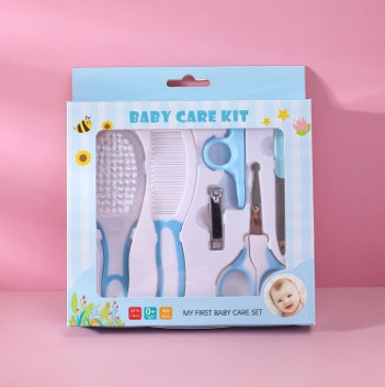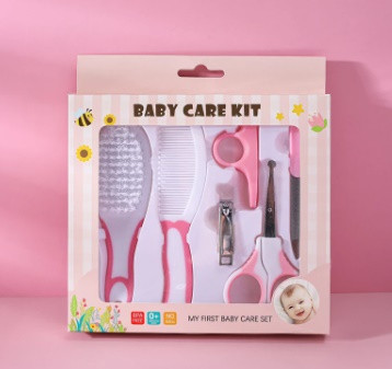 Las 6 piezas esenciales cubren sus necesidades, incluido un cepillo para el cabello para bebés, un peine para el cabello, un cortaúñas, una cubierta para un cortaúñas, unas tijeras para uñas, una cubierta para unas tijeras para uñas.