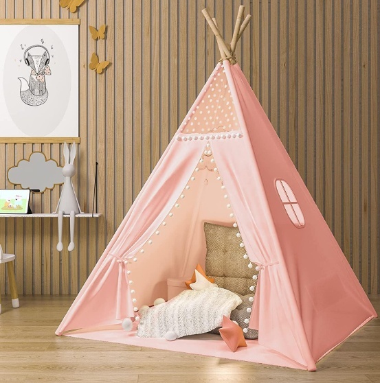 carpa para niños con bolsillo interno palos de madera redondos facil de armar en segundos viene con manual.