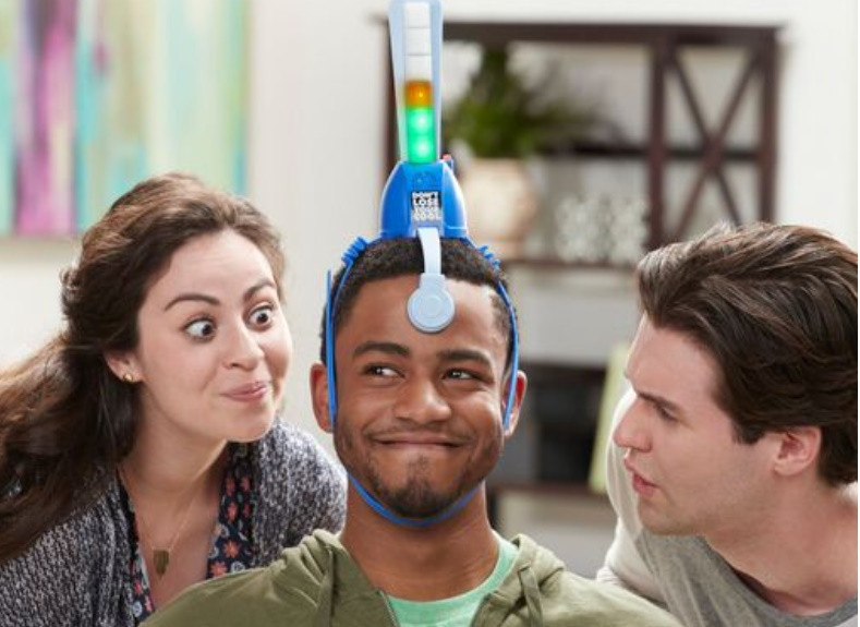 • Coloca el dispositivo en tu cabeza, el sensor de pulsaciones tiene que estar pegado a la frente sin que el pelo lo roce, ajusta la cinta alrededor de tu cabeza y barbilla, pulsa el botón rojo y mientras el dispositivo busca tu pulso y empieza el cronometro, tus amigos tienen que tirar cada uno un dado de los que vienen incluidos, en los dados saldrán distintas acciones que tienen que realizar para que pierdas la calma.