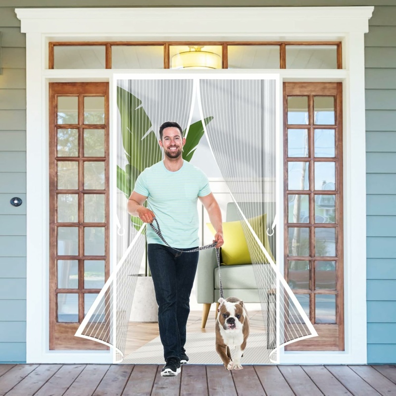 Simplemente con una pequeña presión se abrirá y cerrara solo, incluso para mascotas. Se mantiene continuamente cerrado y se separan los paños al atravesarlo, cerrándose inmediatamente detrás de quien lo cruce. Está compuesto por dos paños tipo cortina, con dos canales centrales por donde se enhebran listones flexibles de imán (cintas), que tienen excelente adherencia entre sí, no permitiendo el paso de insectos y pudiendo ventilarse los ambientes prácticamente como estando con la puerta totalmente abierta.