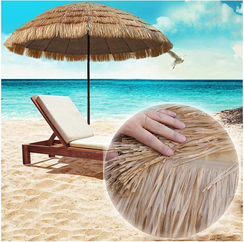 -Sombrilla Hawaiana  con techo de paja, material de protección del medio ambiente de alta calidad, hierba de cuerda de PP ignífuga e impermeable + protección solar y tela impermeable.