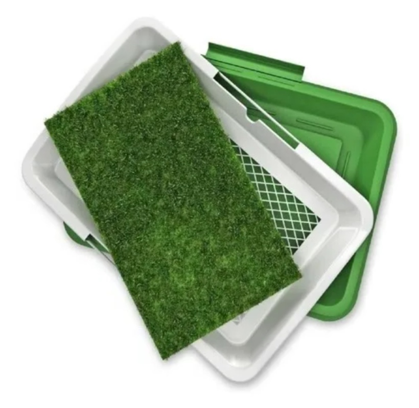 – Cuenta con sistema de 3 niveles:tapete sintético tipo césped ,charola reja, charola recolectora.